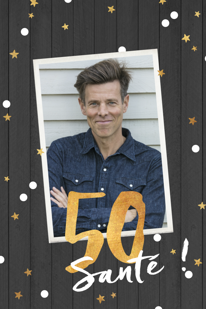 Invitation pour le 50e anniversaire avec confettis et photo.