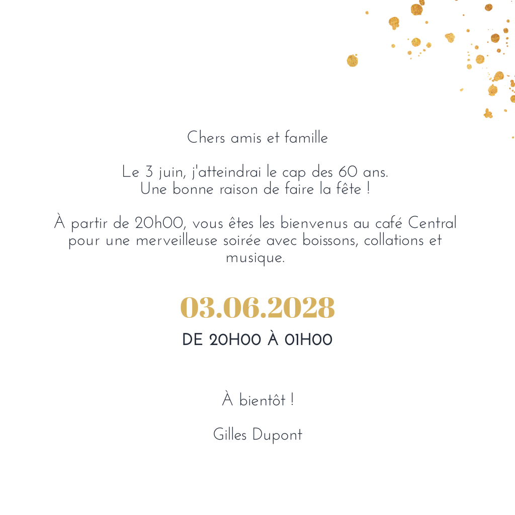 Carte d'invitation élégante avec des verres à champagne et photos.