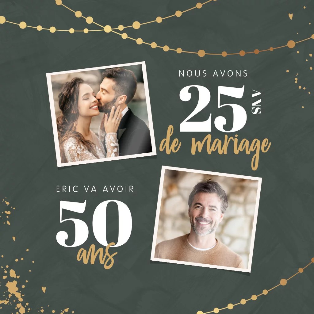 Carte d'invitation classique à une double fête avec des guirlandes.