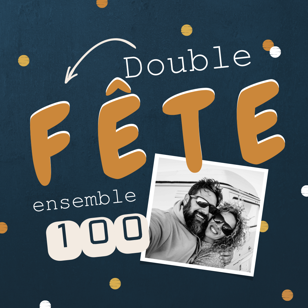 Carte d'invitation à une double fête avec une photo et des confettis