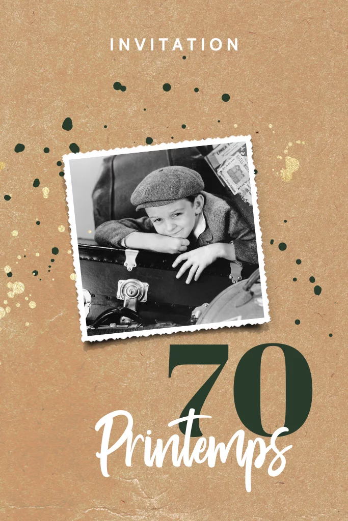 Carte d'invitation anniversaire 70 ans avec photo sur aspect kraft