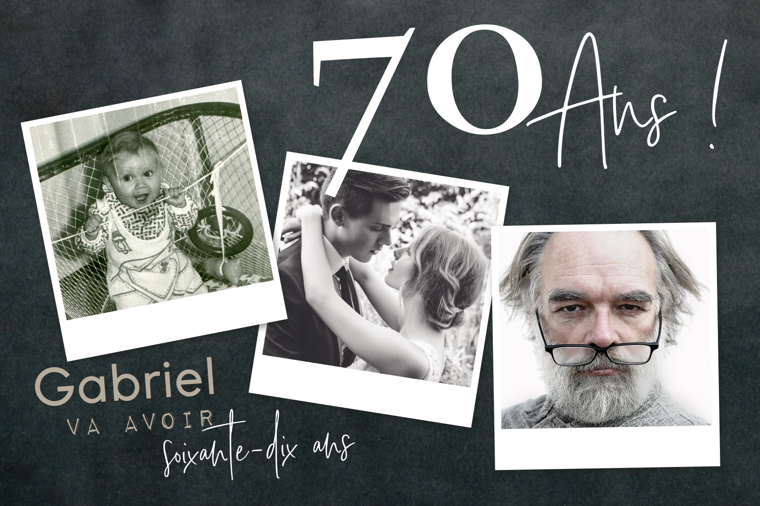 Carte d'invitation pour le 70e anniversaire avec des éléments dorés.