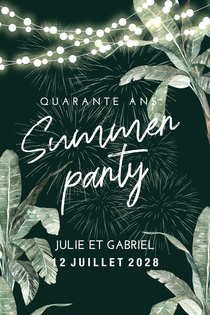 Carte d'invitation élégante avec feux d'artifice et dorures.
