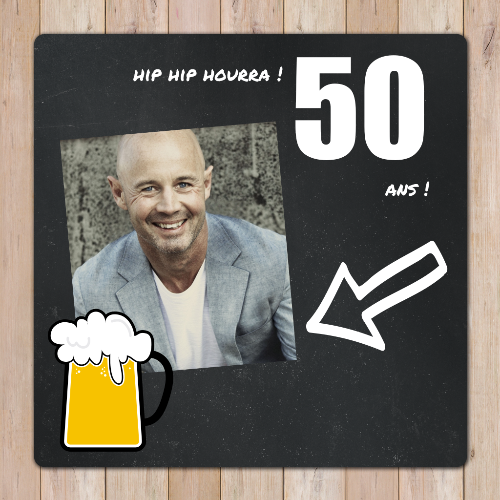 Invitation moderne pour les 50 ans avec photo et chope à bière