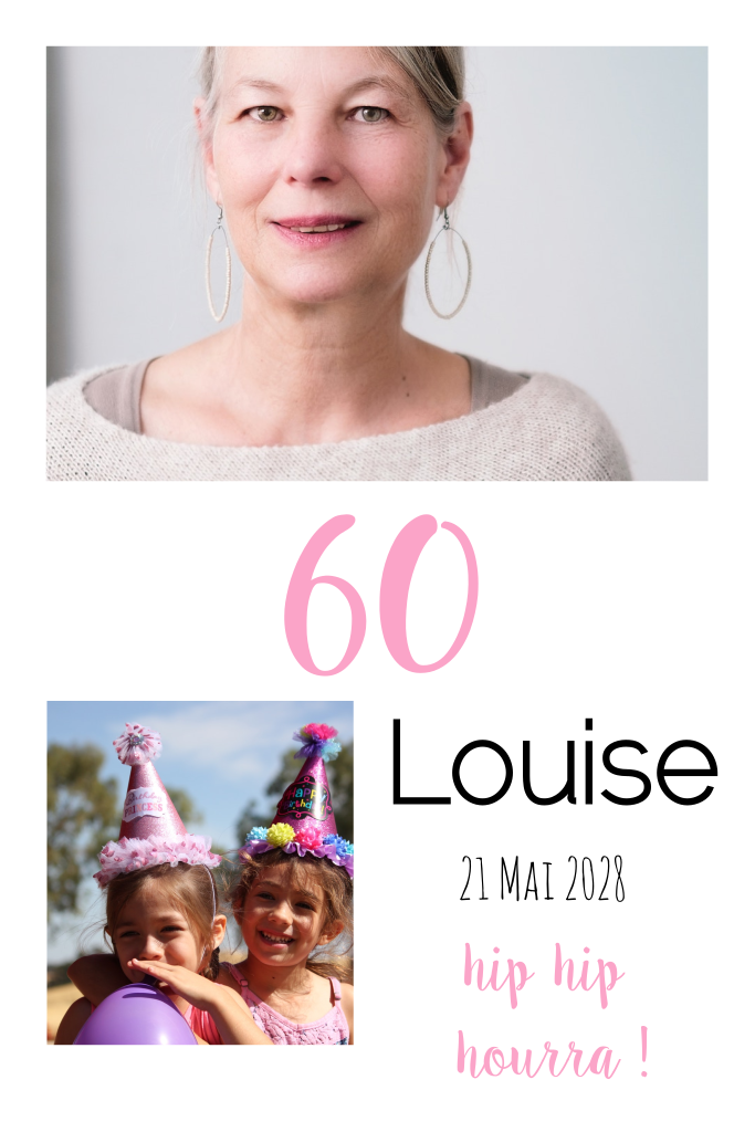 Carte d'invitation simple pour les 60 ans avec photos et accents roses