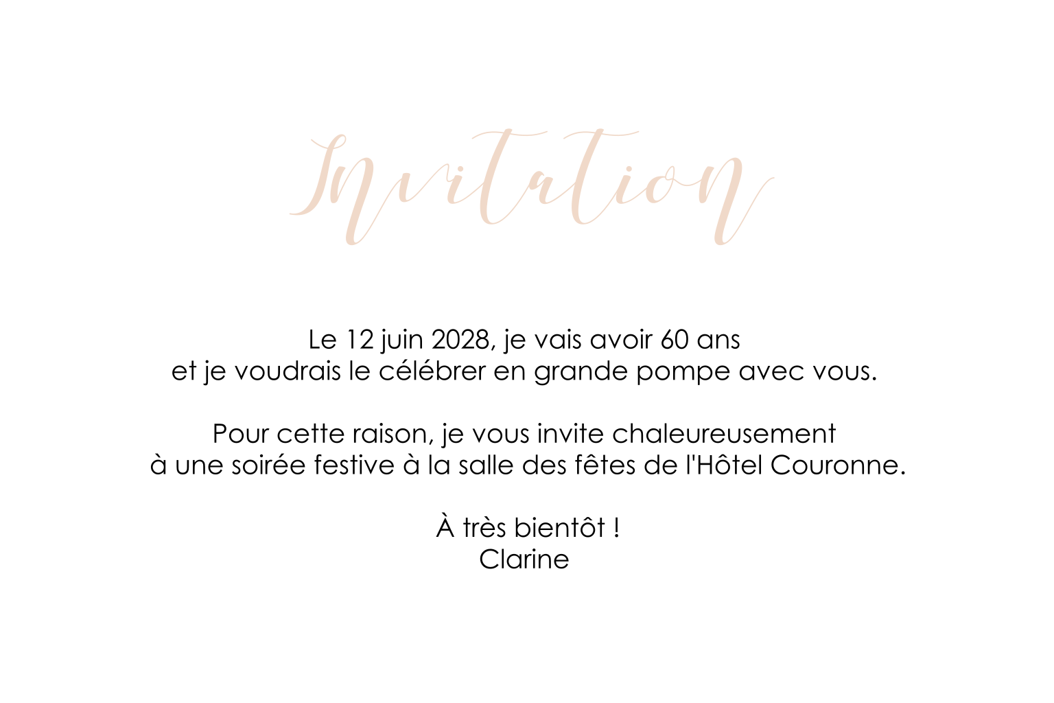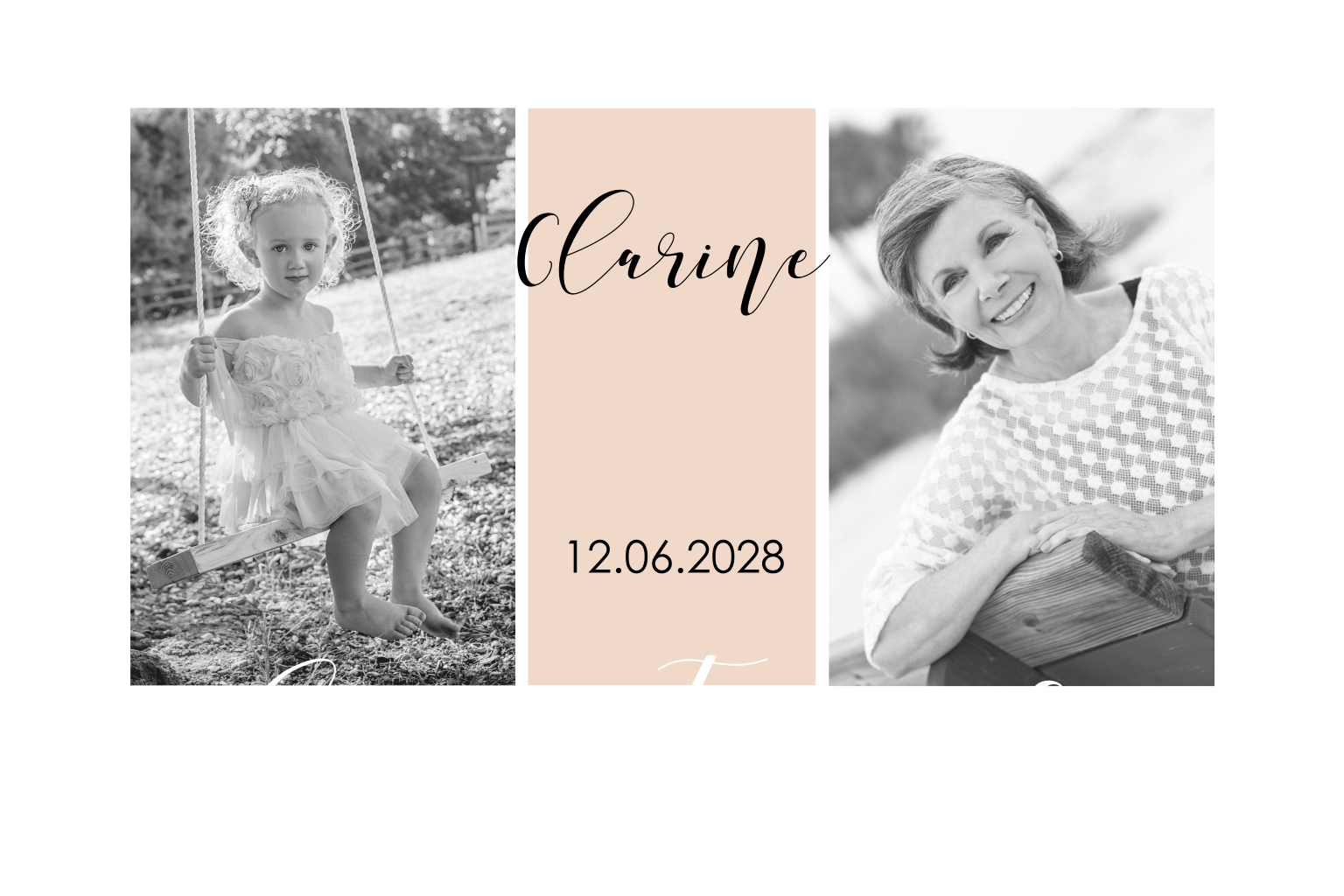 Carte d'invitation d'anniversaire avec des photos et dorure rosée.