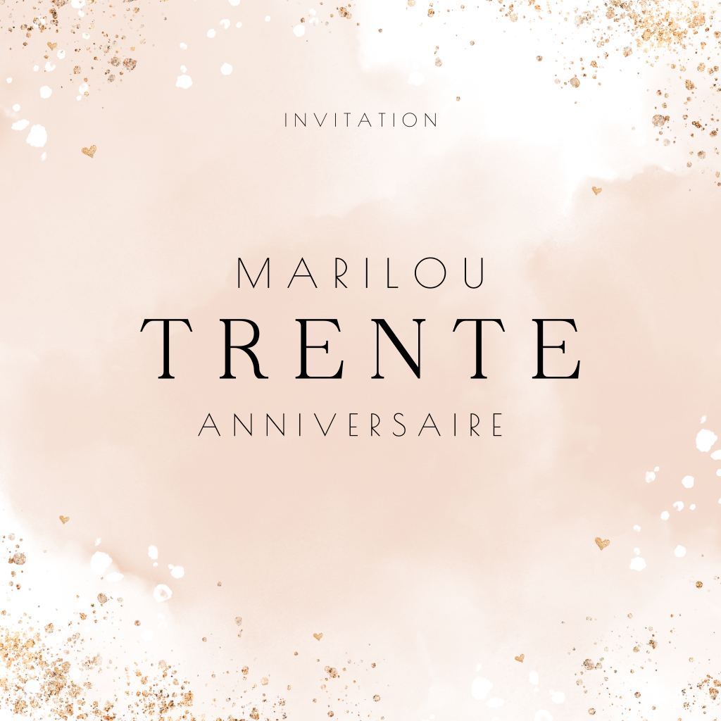 Carte d'invitation romantique pour les 30 ans sur fond rose.