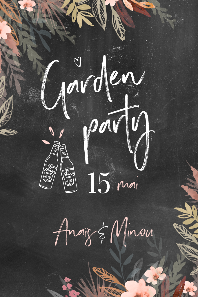 Invitation à une double fête avec fleurs sur fond de tableau noir
