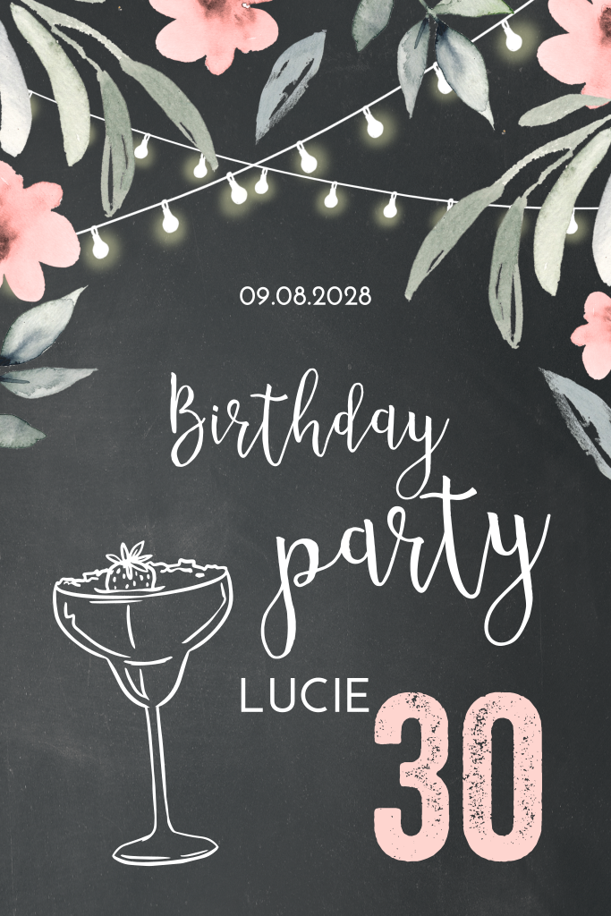 Carte d'invitation tendance avec des feuillages et fleurs.