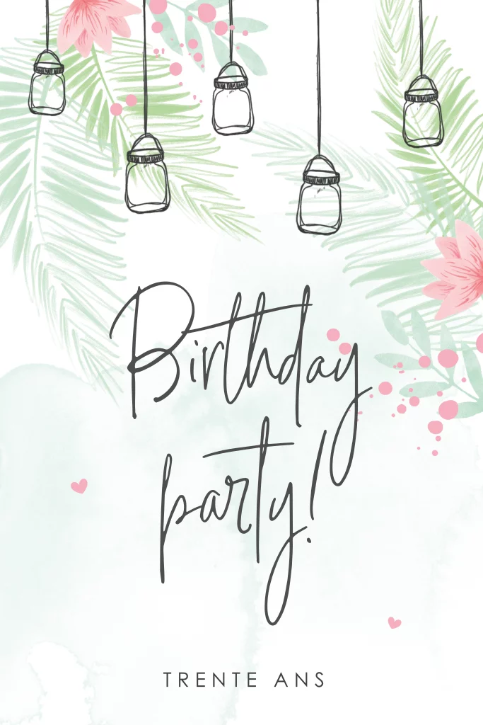 Carte d'invitation tendance avec des lanternes et feuillages.