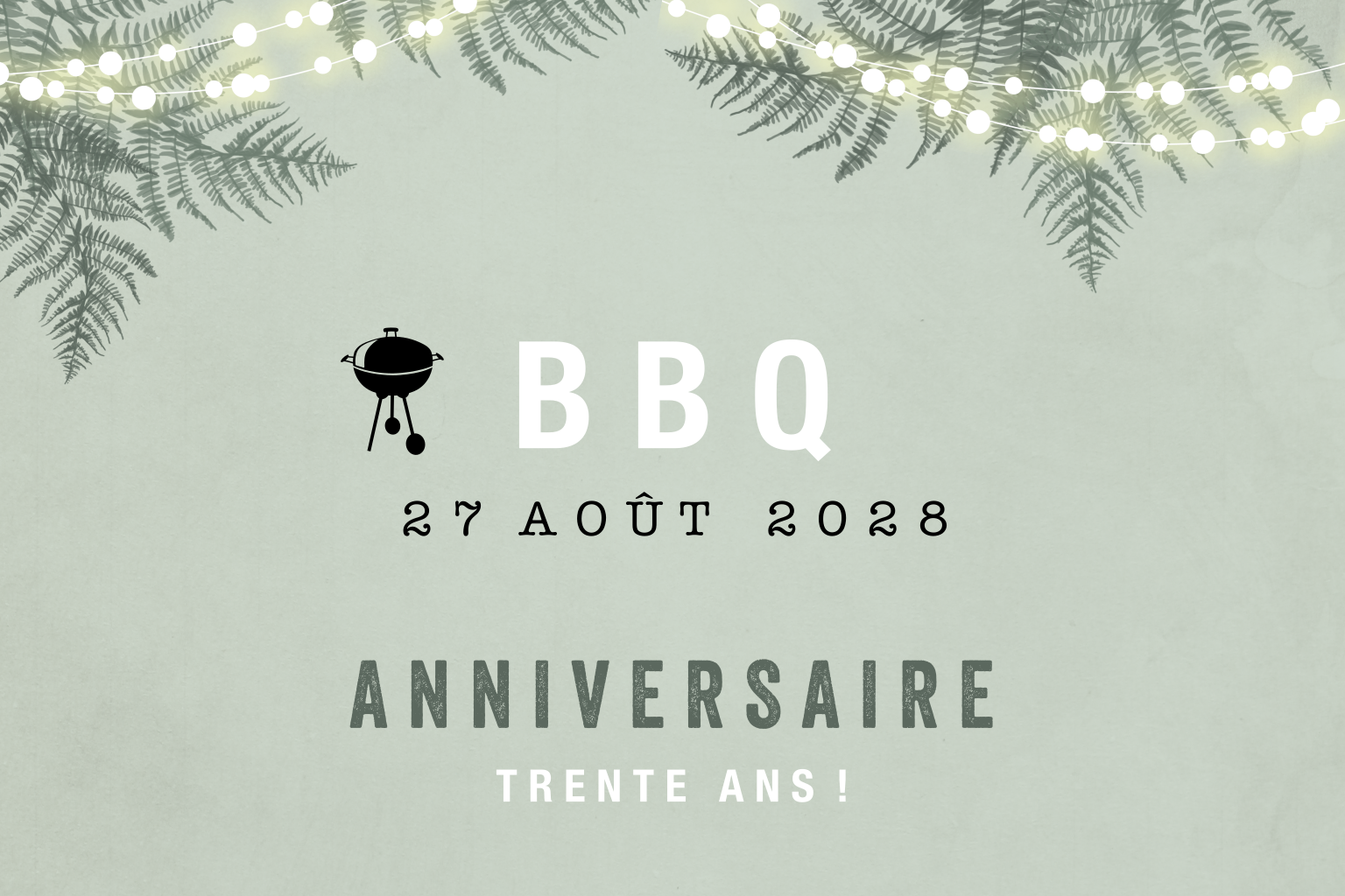 Carte d'invitation pour une fête BBQ pour le 30e anniversaire.