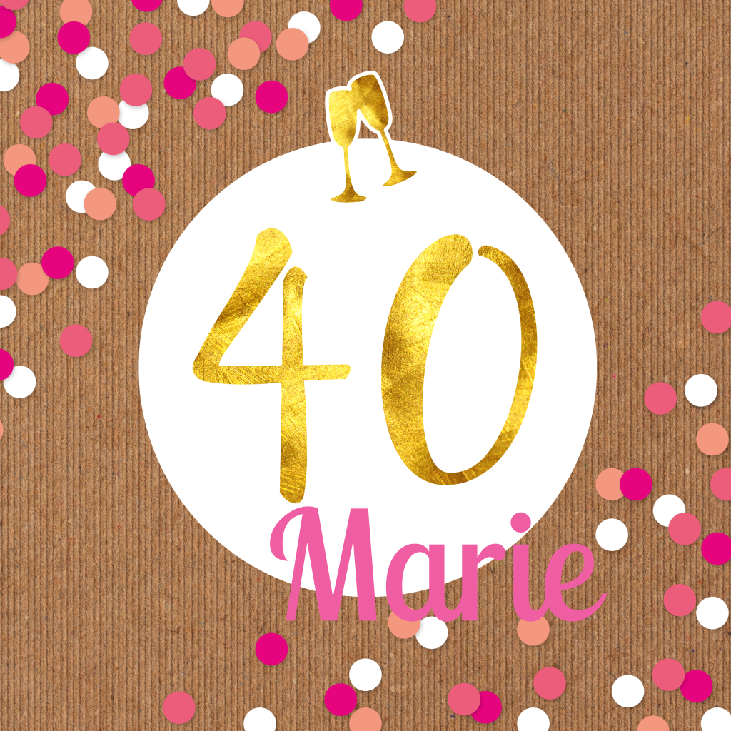 Invitation avec confettis rosés sur aspect carton ondulé.