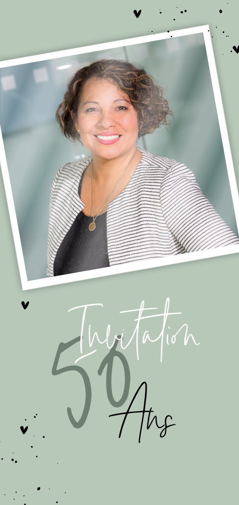 Carte d'invitation jolie avec une photo et des cœurs sur fond vert.