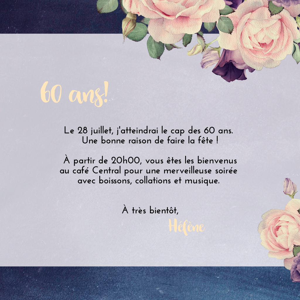 Carte d'invitation romantique pour les 60 ans avec des fleurs