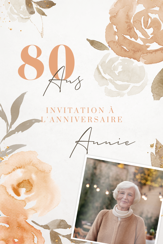 Carte d'invitation pour les 80 ans avec une photos et des roses