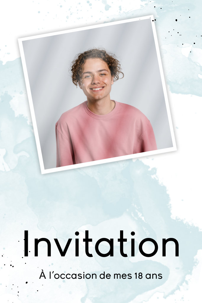 Carte d'invitation d'anniversaire avec aquarelle bleue.