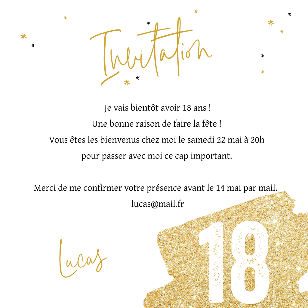Carte d'invitation simple et élégante pour le 18e anniversaire