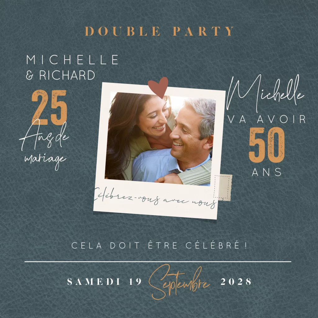 Carte d'invitation moderne à une double fête sur fond aspect cuir.
