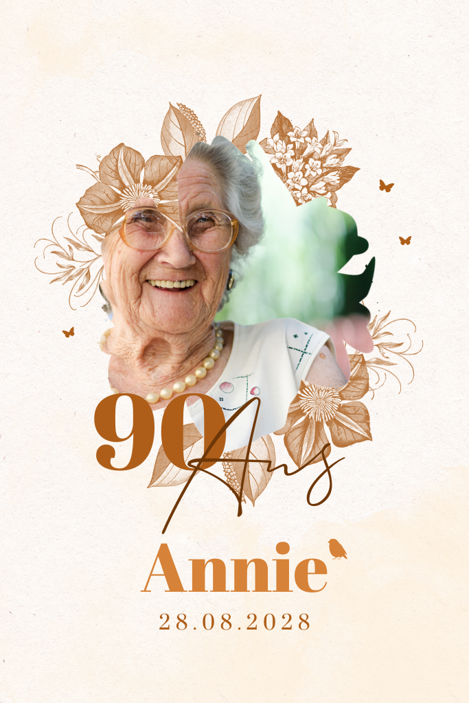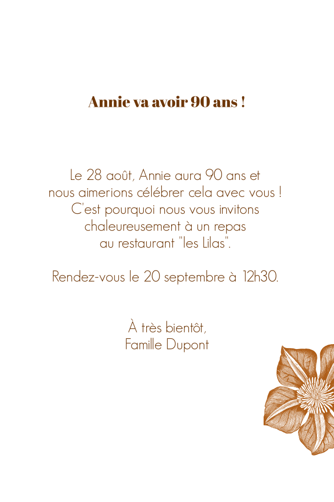 Carte d'invitation pour le 90e anniversaire avec des fleurs