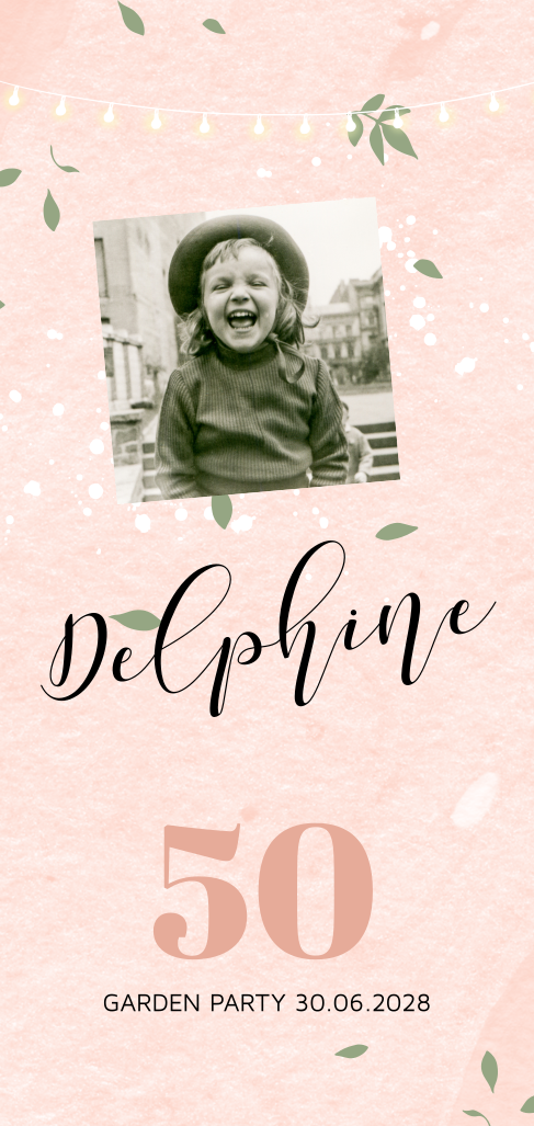 Invitation pour les 50 ans avec photo et guirlandes lumineuses