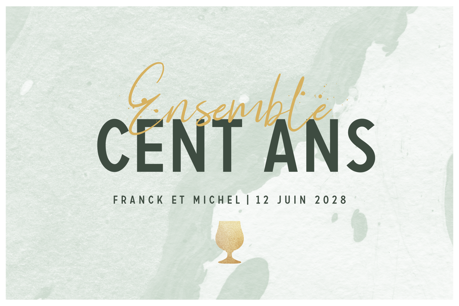 Carte d'invitation pour une double fête sur fond d'aquarelle verte.
