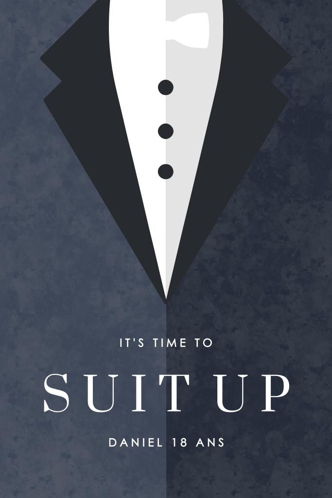 Invitation originale et moderne pour les 18 ans avec un costume.