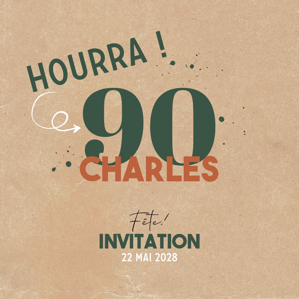 Carte d'invitation pour le 90e anniversaire en style vintage.