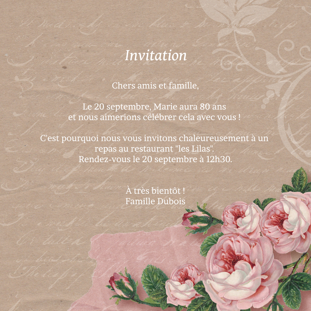 Carte d'invitation d'anniversaire romantique avec des roses.