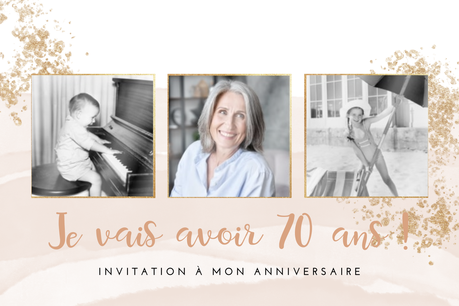 Carte d'invitation élégante pour les 70 ans avec trois photos.