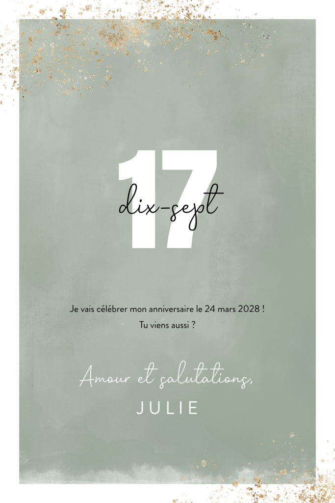 Carte d'invitation avec des dorures sur fond d'aquarelle verte.