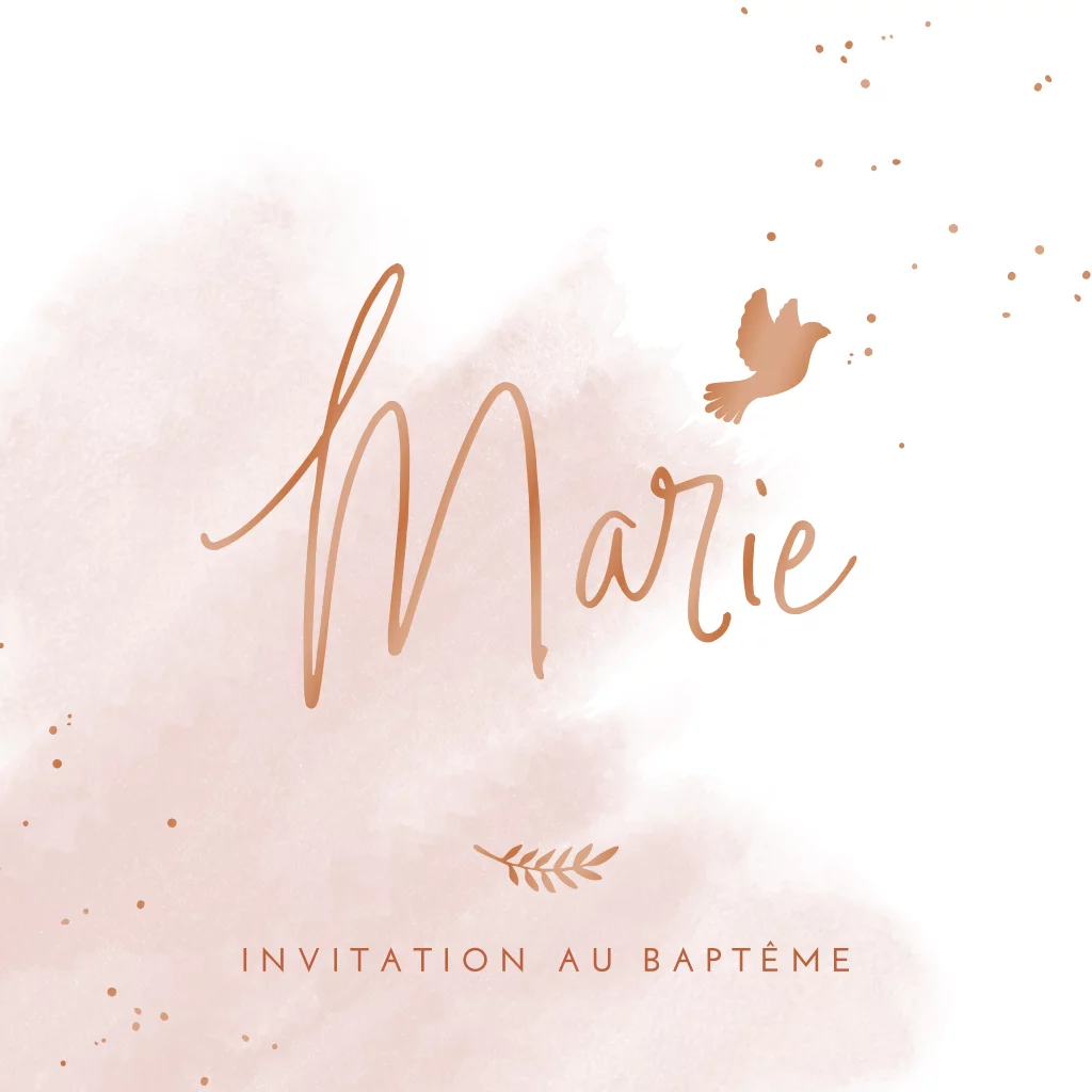 Faire-part de baptême avec aquarelle en rose et vernis.