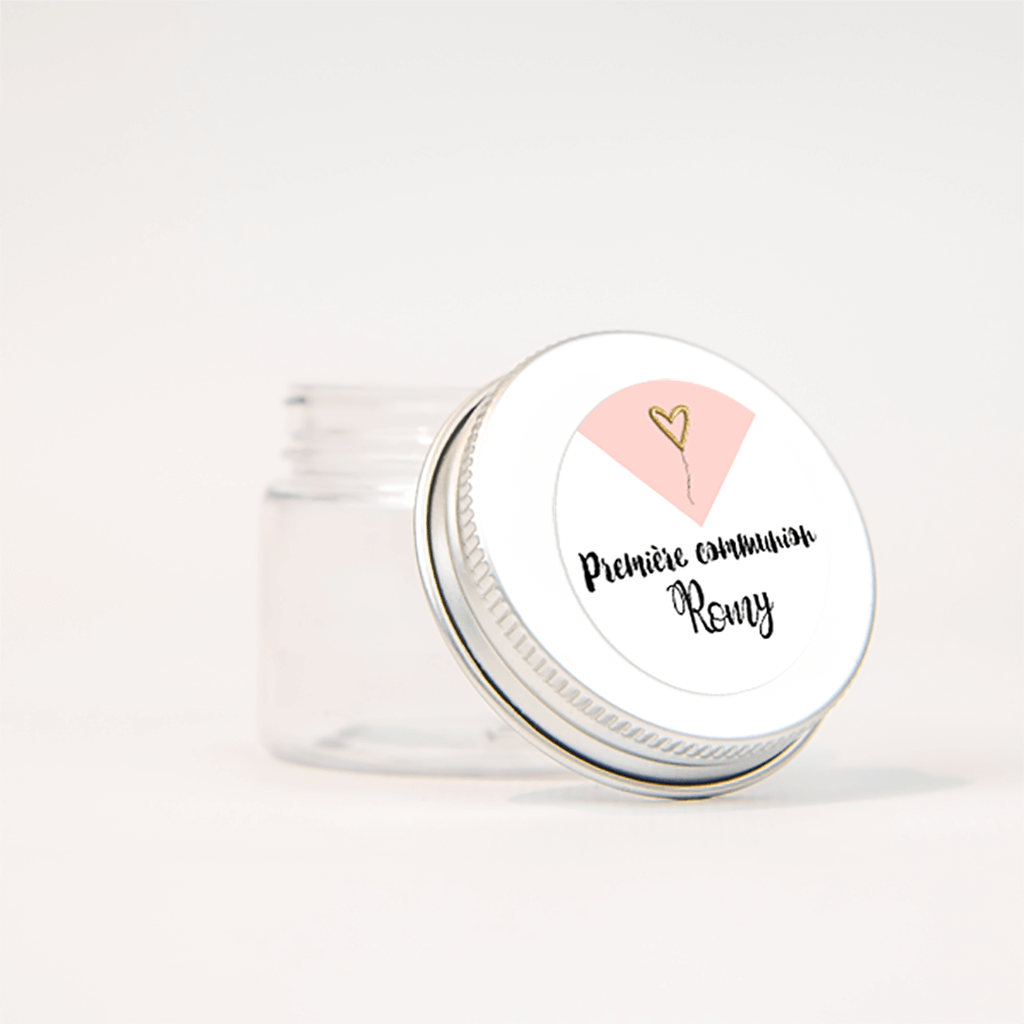 Autocollant communion rose moderne avec cœur - 25 ex.