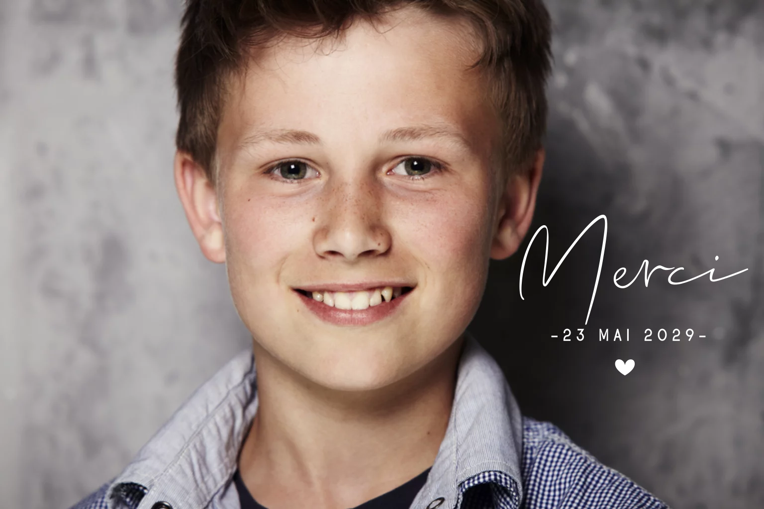 Carte remerciement avec photo, texte et dorure