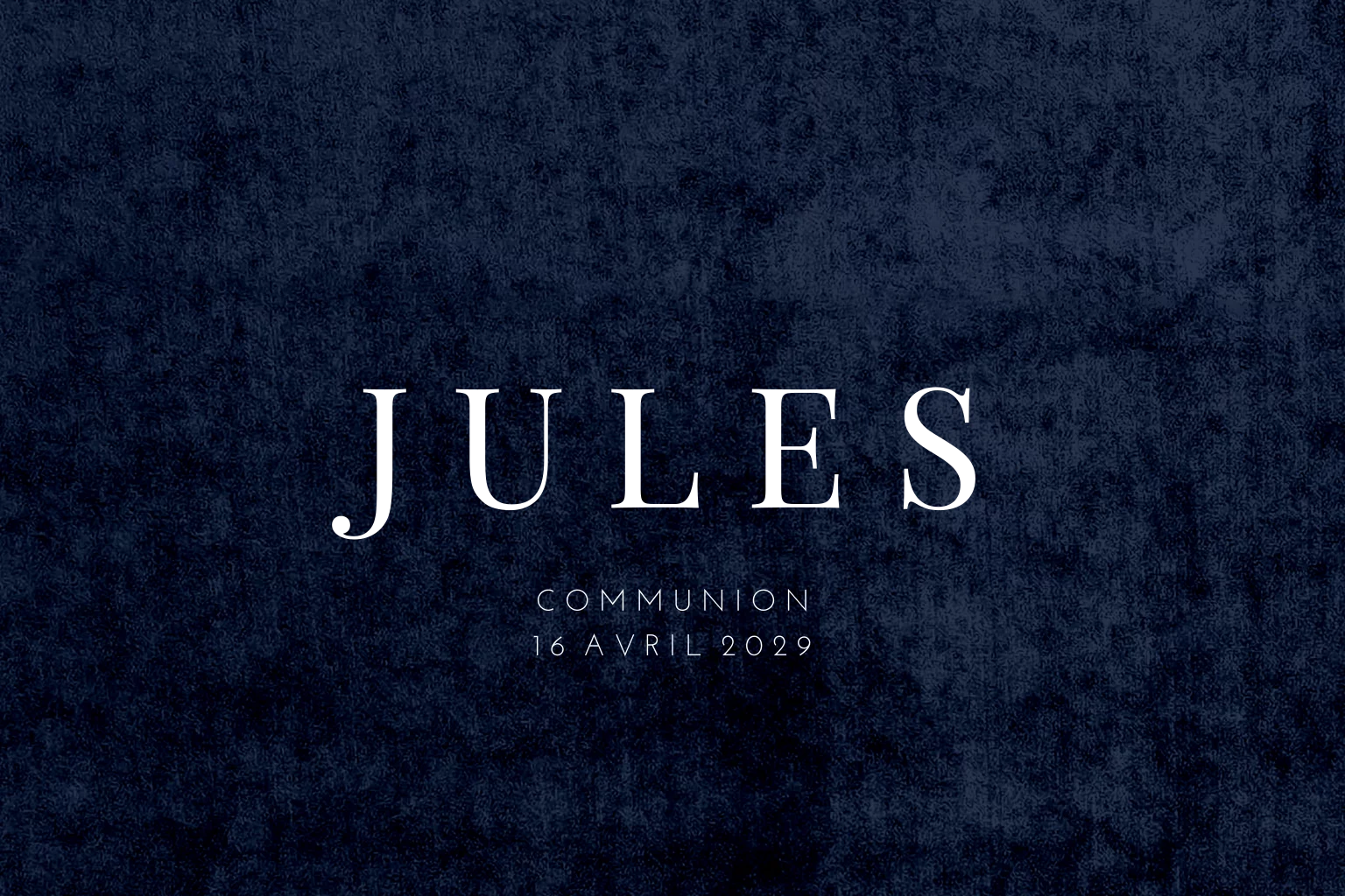 Faire-part communion avec fond bleu nuit et dorure.