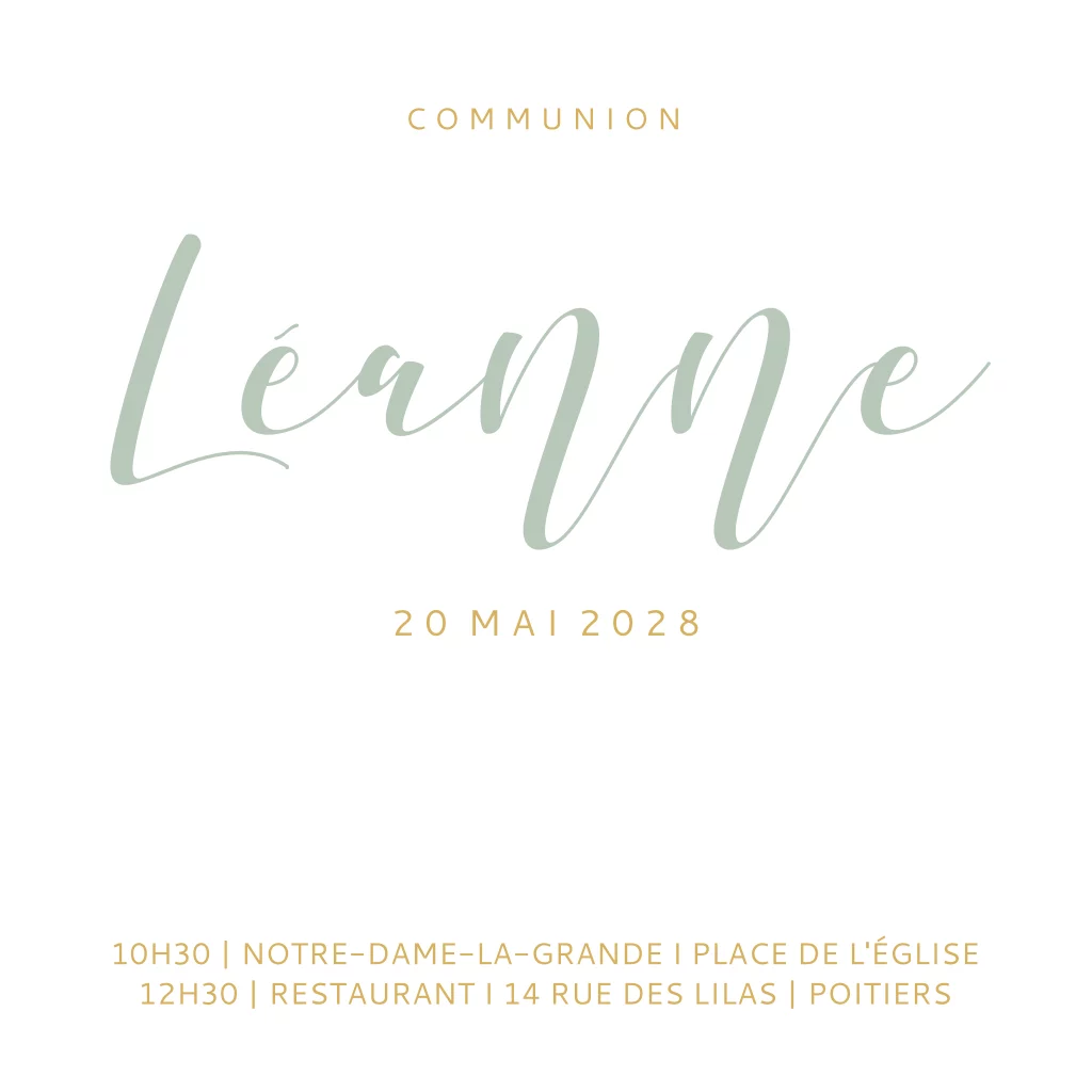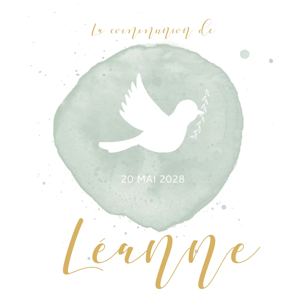 Faire-part de communion avec colombe blanche et aquarelle verte