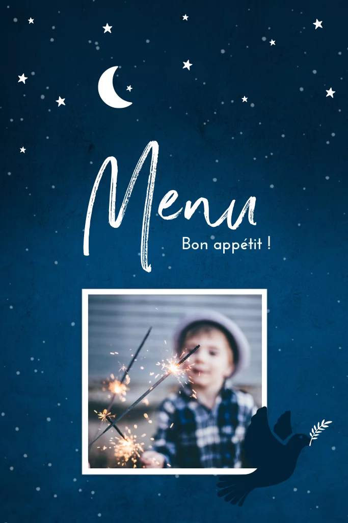 Menu avec fond bleu nuit et ciel étoilé