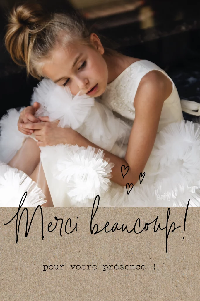 Carte de remerciement de communion effet kraft avec photo et cœurs