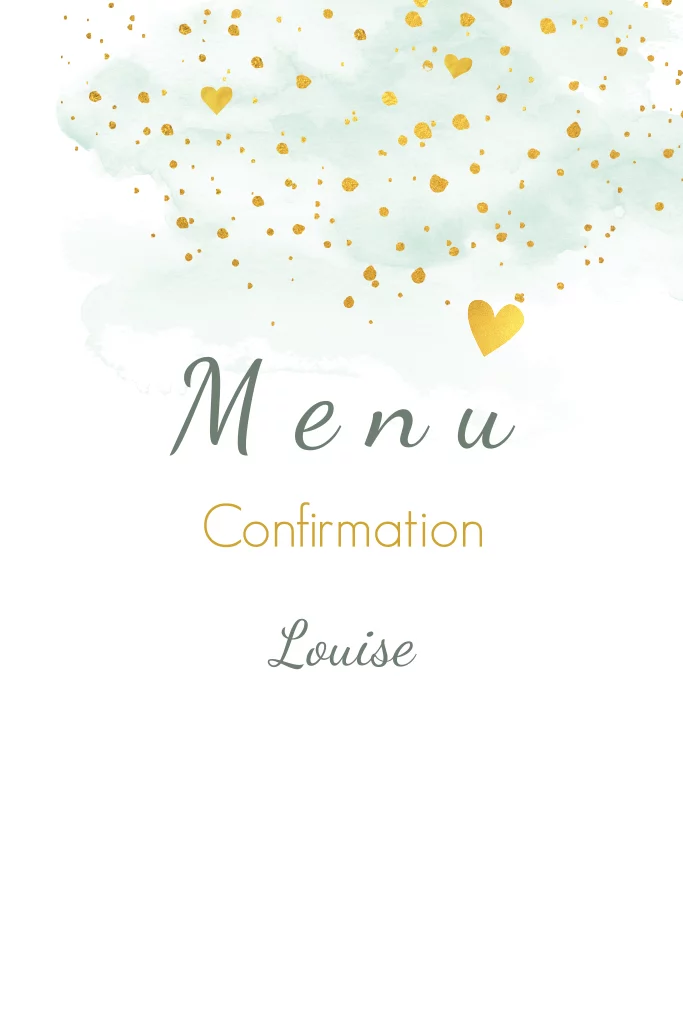 Carte de menu avec des éléments dorés pour la célébration de la confirmation