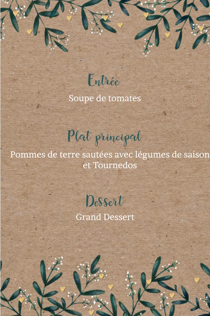 Carte de menu avec un aspect kraft et des branches discrètes