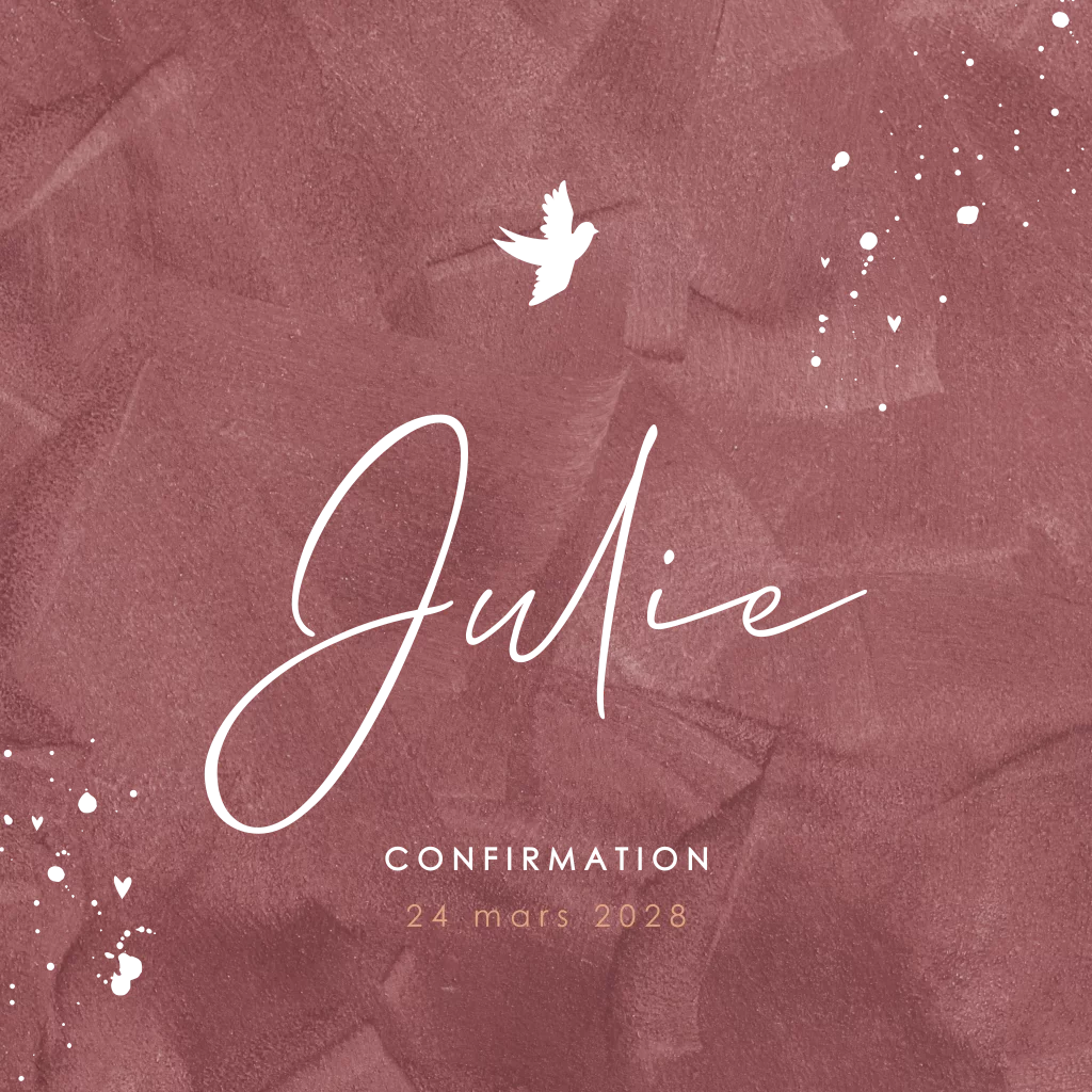 Faire-part de confirmation avec dorure rosée sur fond velours bordeaux