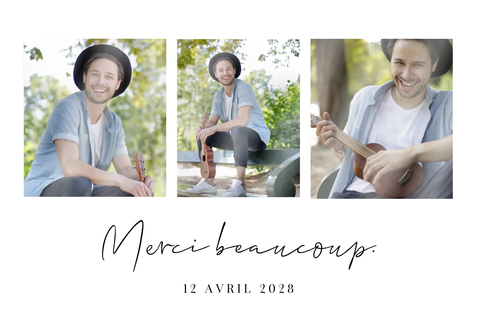 Carte de remerciement moderne pour la confirmation avec trois photos.