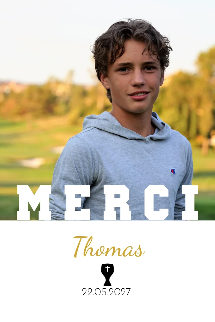 Remerciements pour la confirmation avec un grand merci et photo.