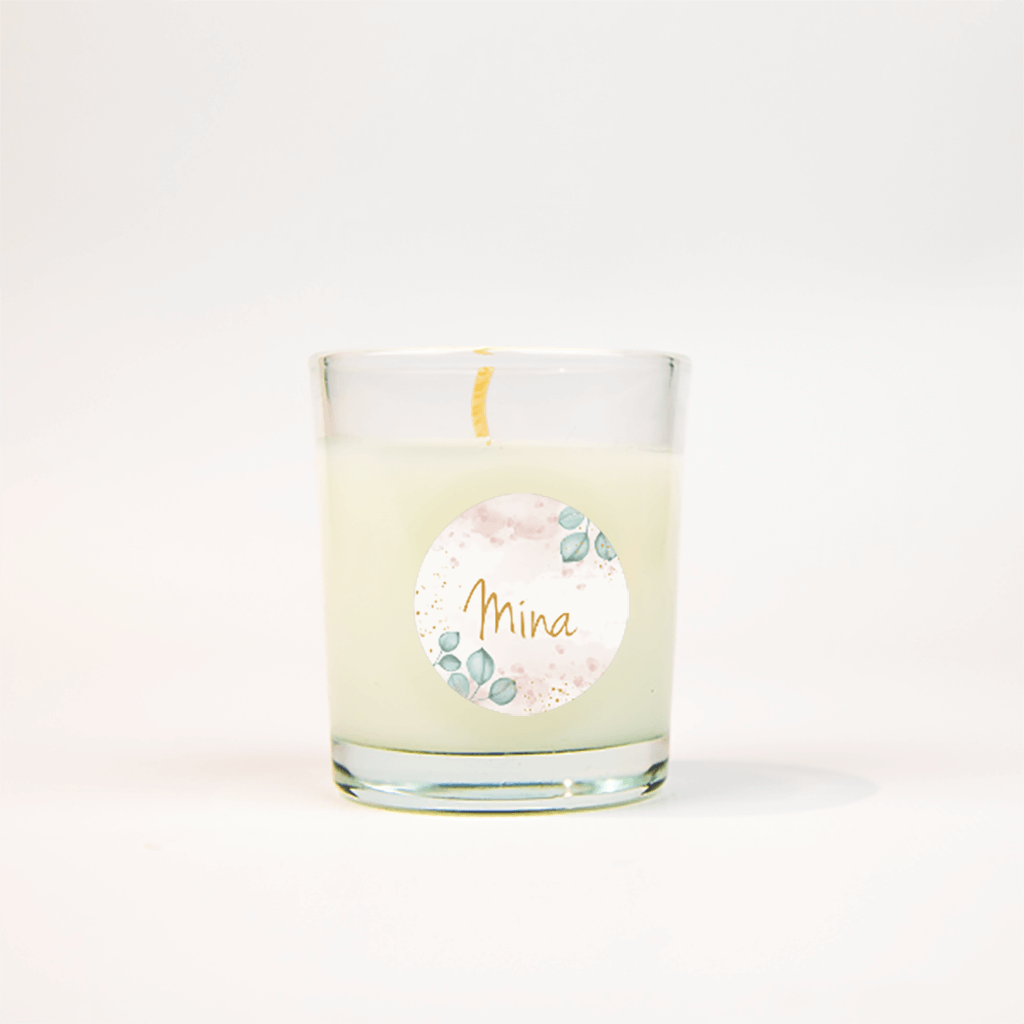 Autocollant communion avec eucalyptus et aquarelle rose - 25 ex.