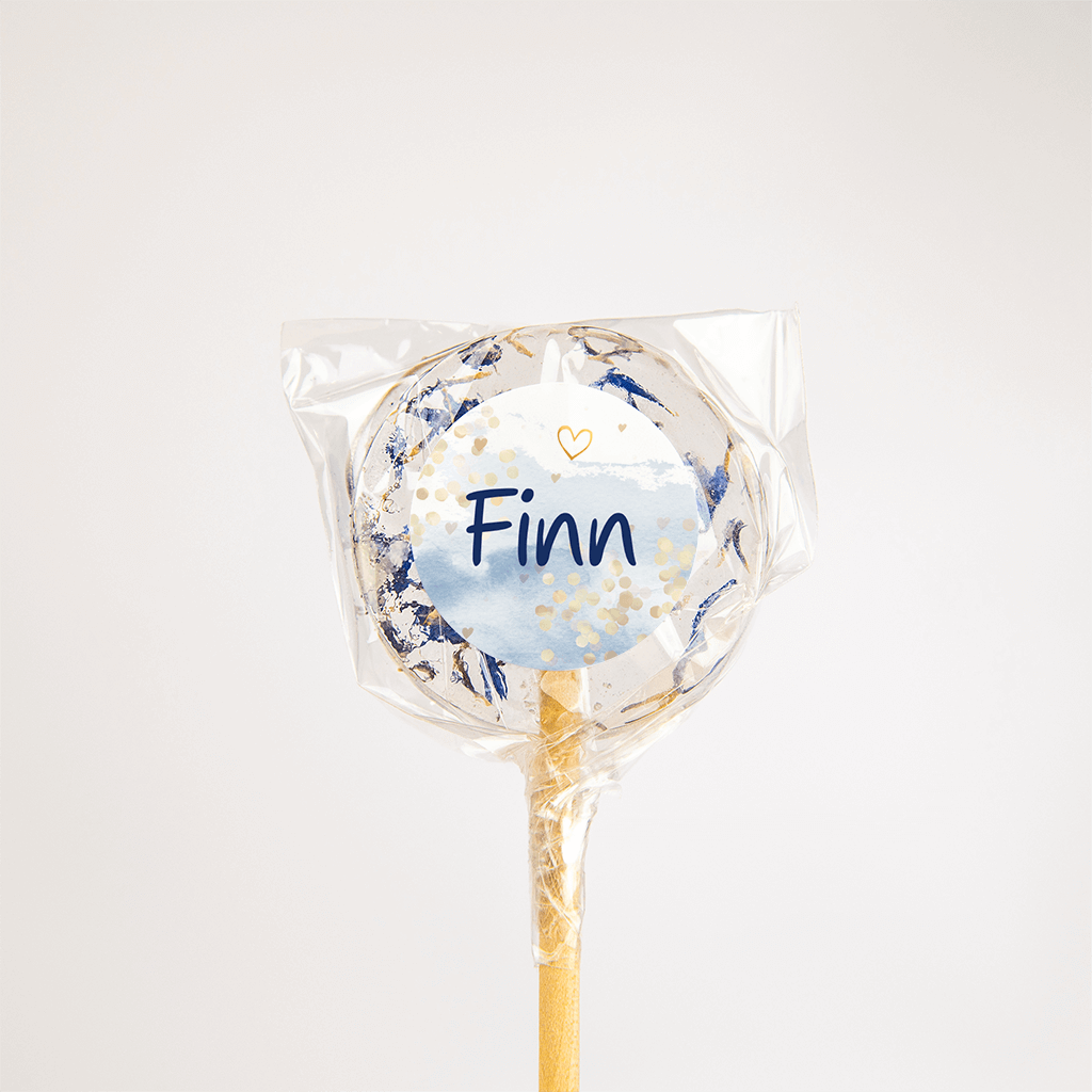 Autocollant avec fond aquarelle bleu et coeurs jaunes - 25 ex.