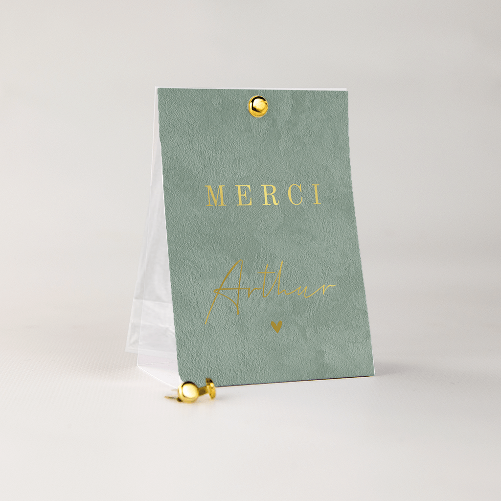 • Les deux faces peuvent être fermées à l'aide d'une attache parisienne et la boîte à dragées peut être complétée d'un sachet transparent pour les dragées.