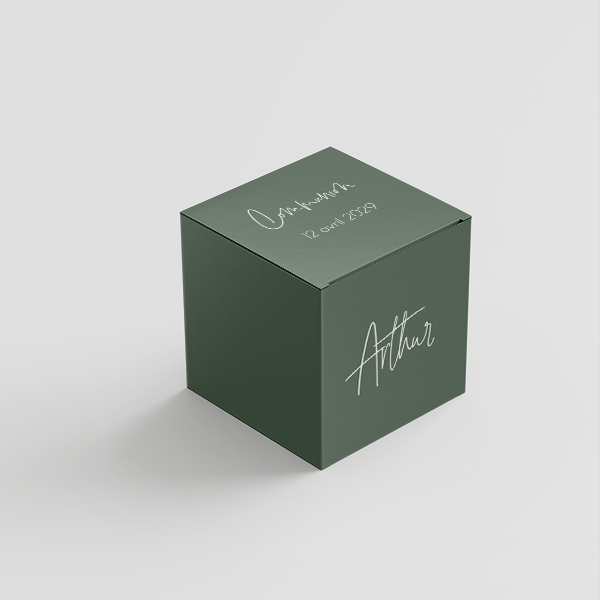 La boîte, avec des dimensions de 5 cm de chaque côté, est livrée dépliée. Le délai de livraison est de 4 jours ouvrables.