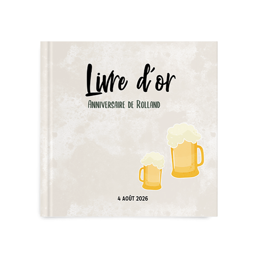Le livre d'or comprend 72 pages (soit 36 feuilles recto verso) en papier blanc de qualité 160 g/m². Il est relié avec une couverture cartonnée brillante entièrement personnalisable.