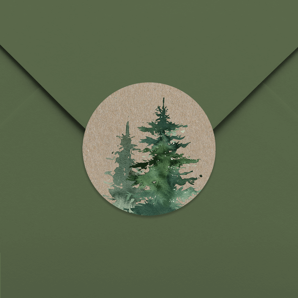 Autocollant d'aspect kraft avec sapins – 20 ex.