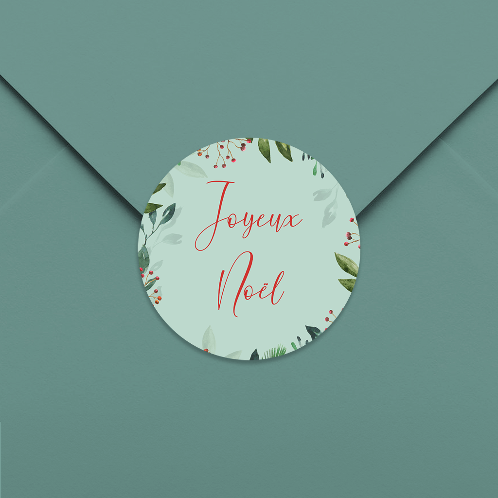 Autocollant avec branches de Noël sur fond turquoise – 25 ex.