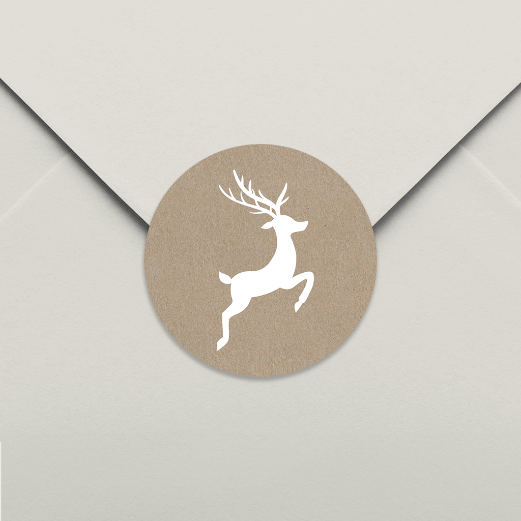 Autocollant renne de Noël blanc sur fond kraft